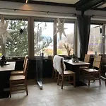 O quarto de bom tamanho, maior do que na maioria dos hotéis em Berchtesgaden. O restaurante está localizado a 300 metros.